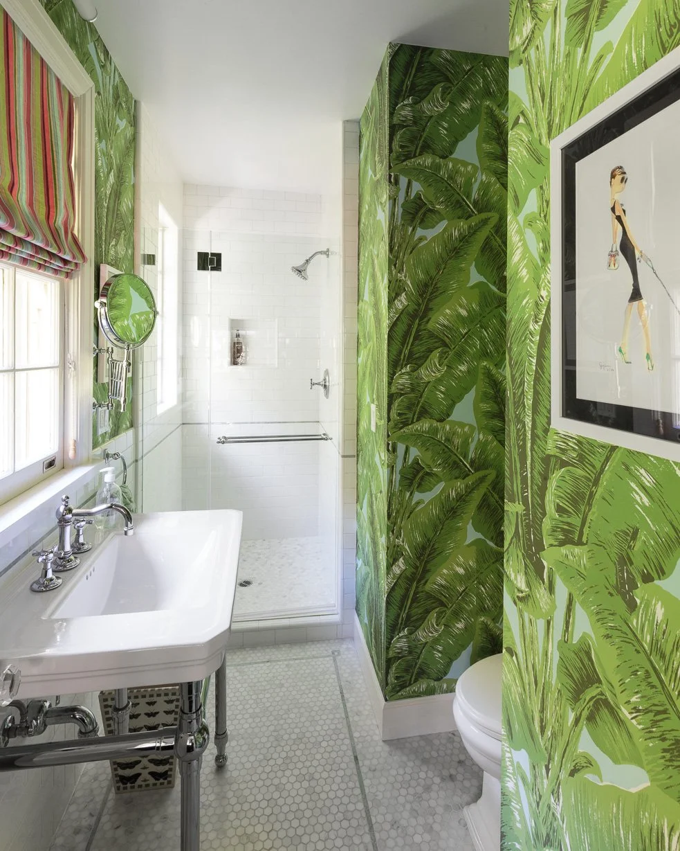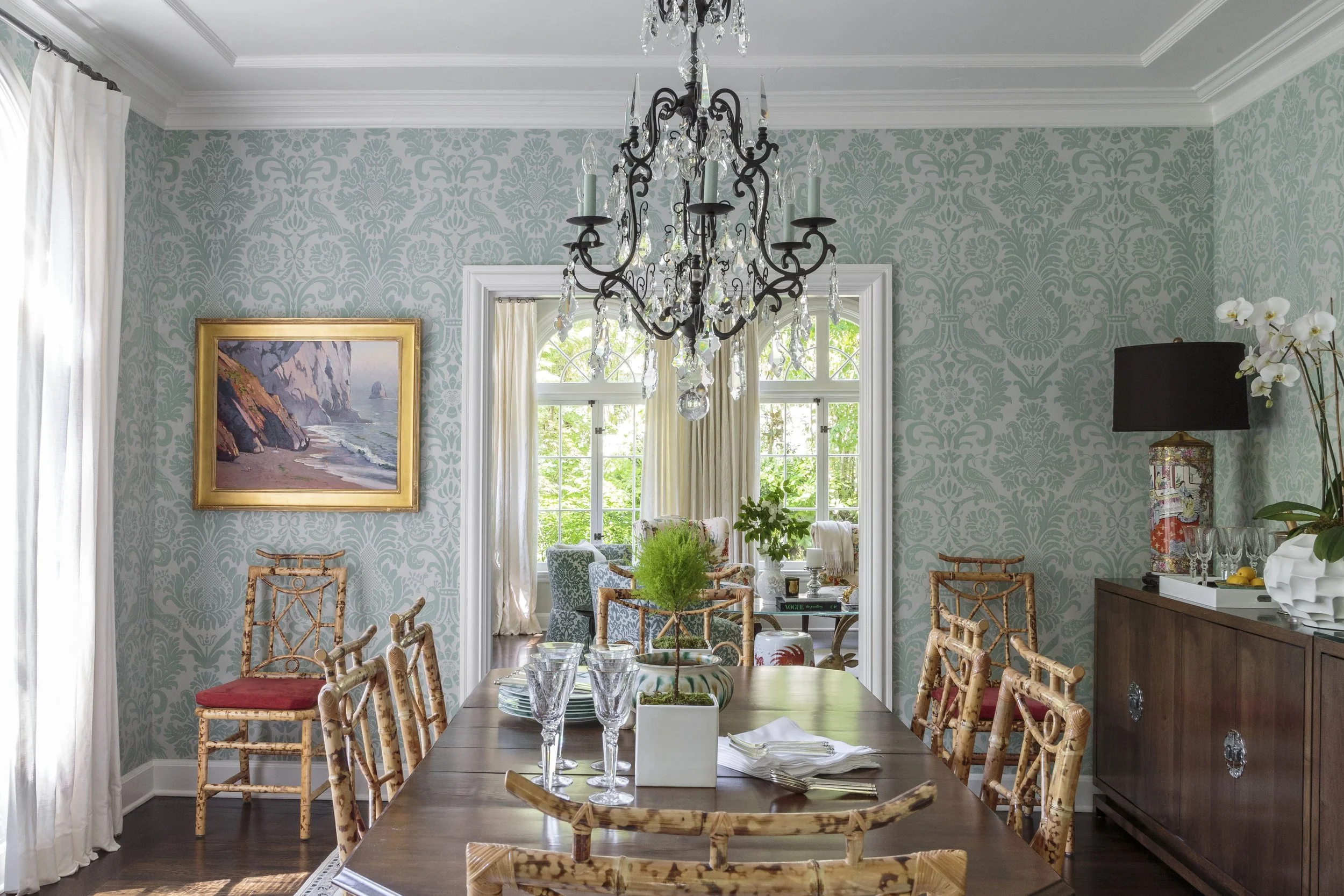 Brunschwig and Fils Xian, a classic chinoiserie, for its color palette and sophisticated storybook style